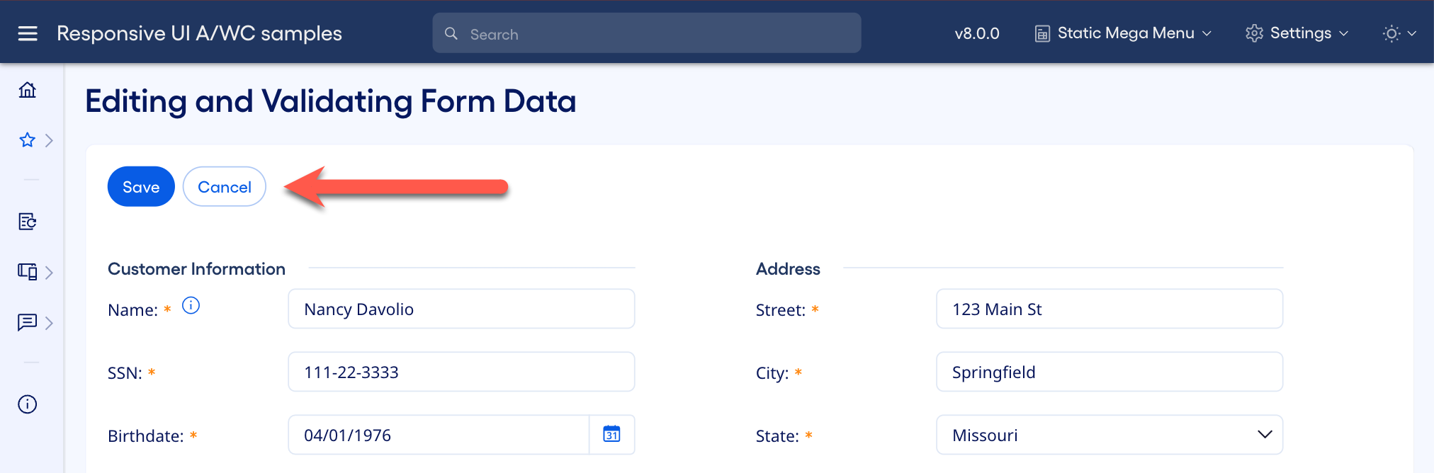 - The validation error navigator helps the user (a) see that the form contains validation errors and (b) navigate between validation errors, without consuming any new space in the view.