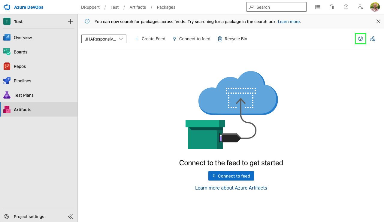 - If your project is also in the JackHenry organization, select Azure Artifacts feed in this organization.