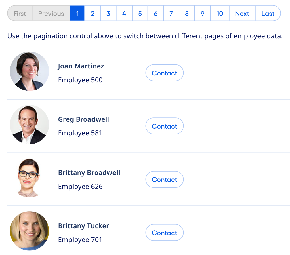 | maxPageButtons | number | 0 | Set this to a value greater than zero if you want to cap the number of data pages shown in the pagination component. This can be useful in reducing the number of page buttons displayed in the data pager when a very large number of data items exist for the user to page through. If greater than zero, than no more than the specified number of data page buttons display, with a range that keeps the current data page in the middle. |