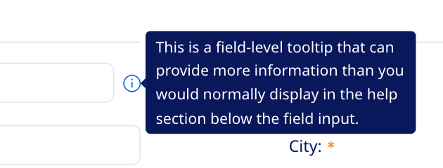 - You can optionally display a field-level tooltip to the right of any field label if that field should display additional help input in a special tooltip when the user hovers or clicks the icon.