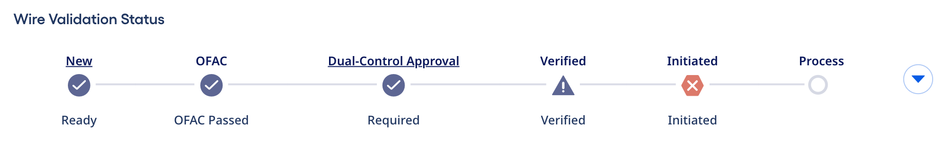 The process timeline visually indicates the progress made on each step in the process. These steps are displayed horizontally, from left to right.