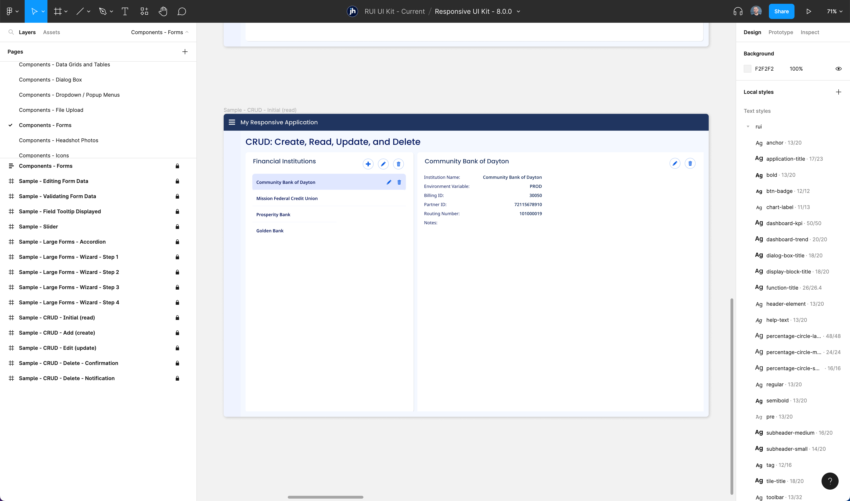 Responsive UI provides you with a Figma-based UI kit and design samples to help you design your application in advance of development.