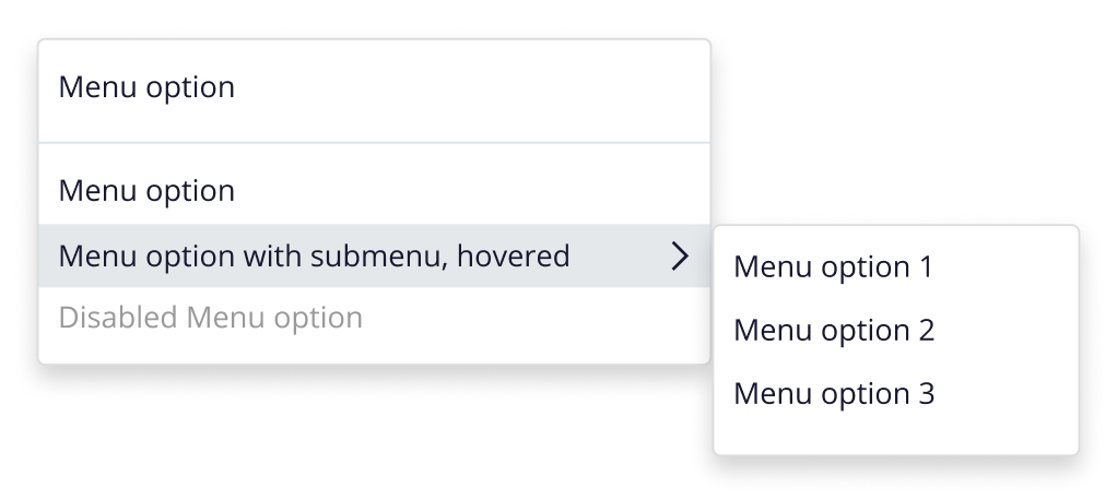 | Menu option - disabled | Add text and apply the “rui-regular” text style and “rui-pacific/text-disabled” color style. |
