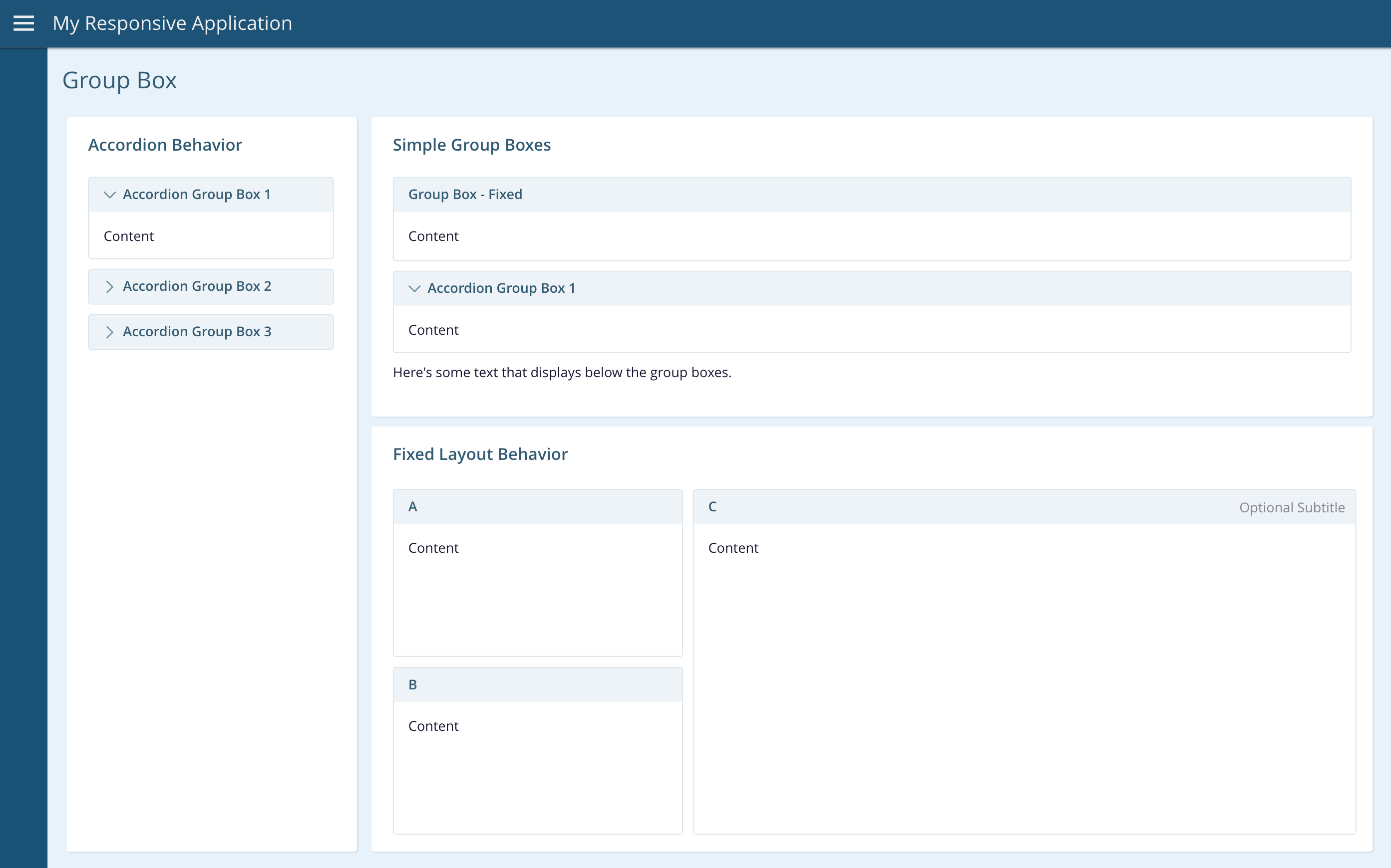 Group boxes can operate in one of three different modes: simple, expandable, and accordion. Each of these modes is discussed below.