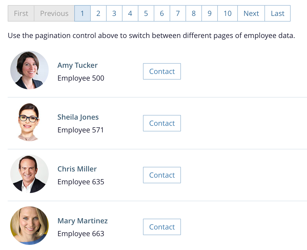 - If you’re showing the first page button as active, then the Previous button is disabled but all other buttons are enabled.