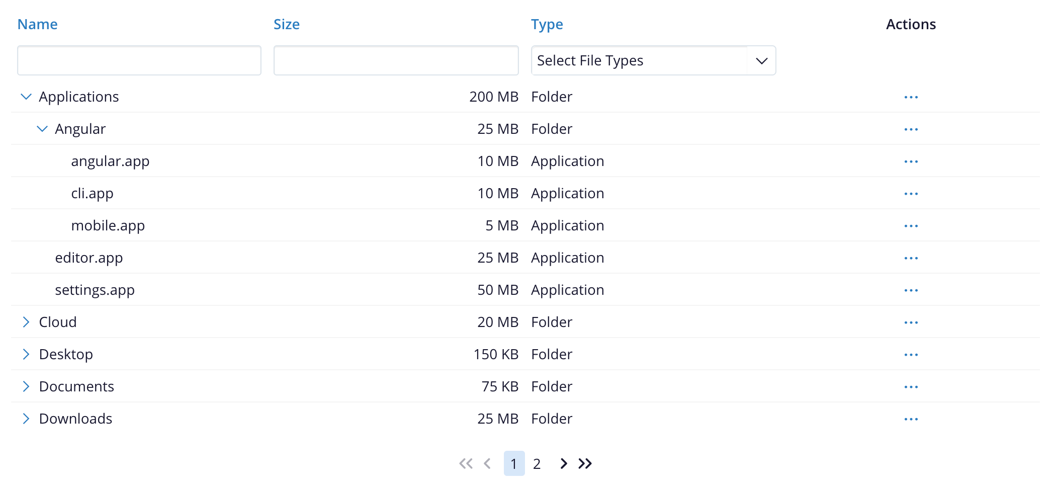 - Tree grid: Used for hierarchical table data