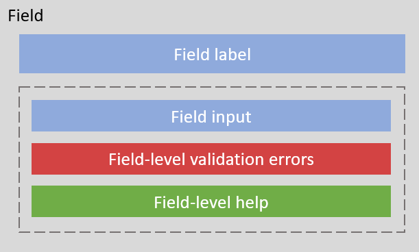Provides layout for the elements of an individual form field.