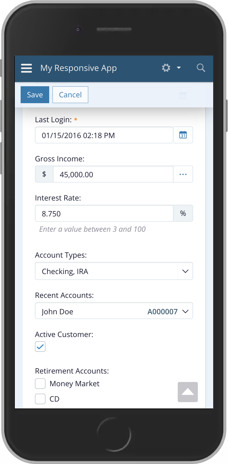 - The floating toolbar keeps the form’s control buttons always accessible, regardless of how far the user has scrolled down in the form.