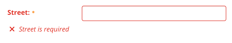 Most validation errors apply to individual fields in the form. Display these validation errors beneath the field’s input. The field label and input border turn red to indicate the error status.