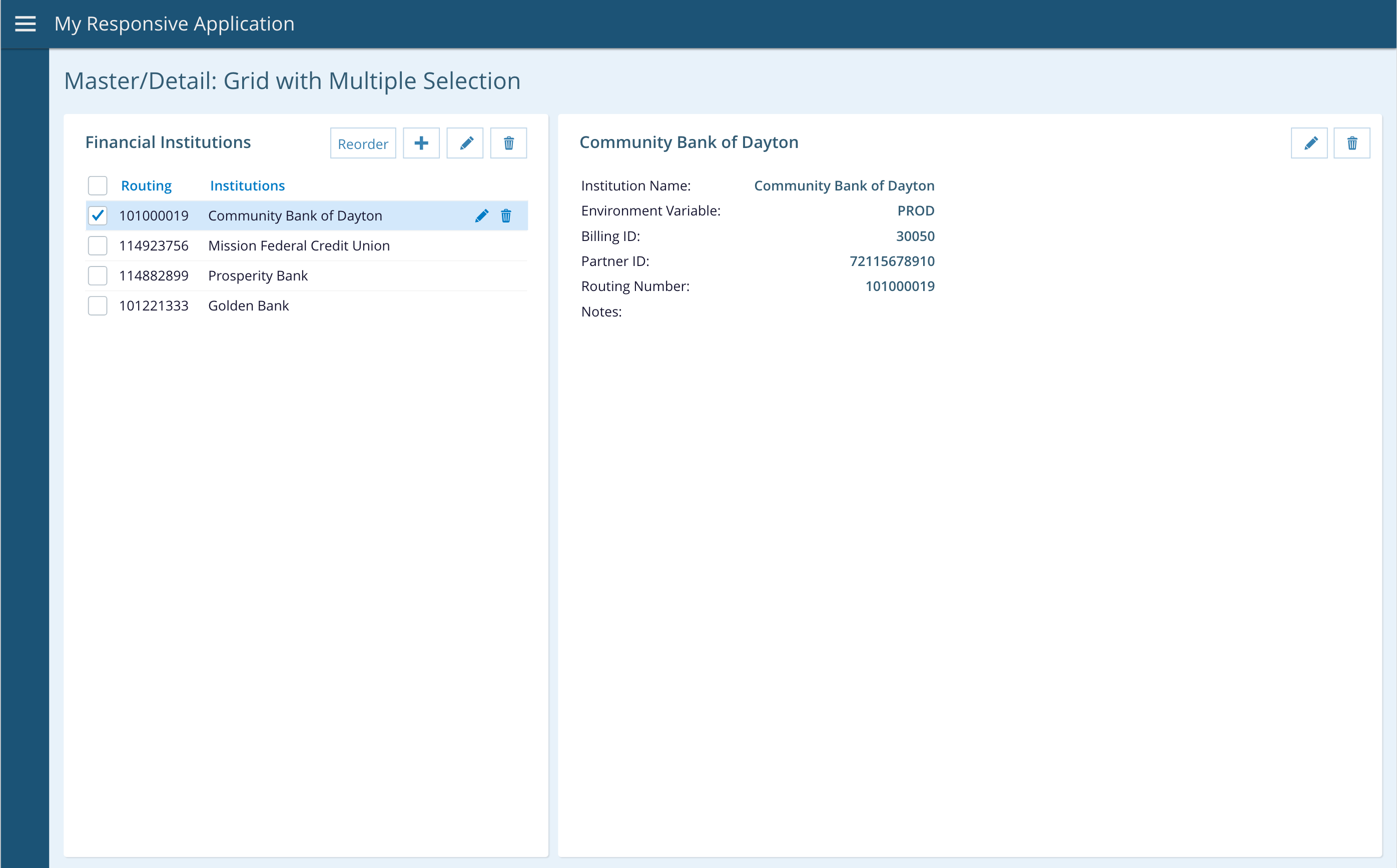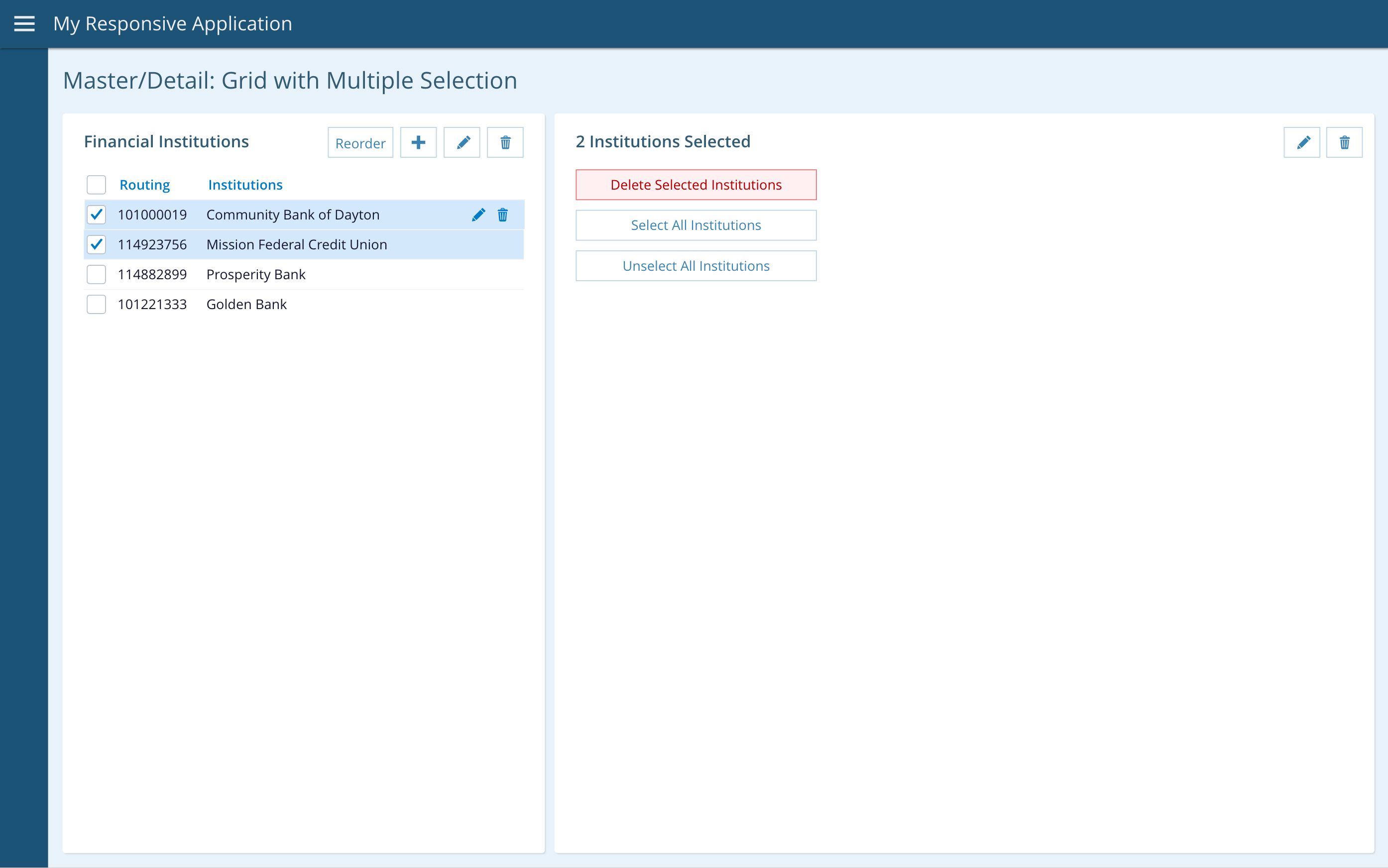 - Sample App - Master/Detail - Grid with Multiple Selection - Multiple Items Selected