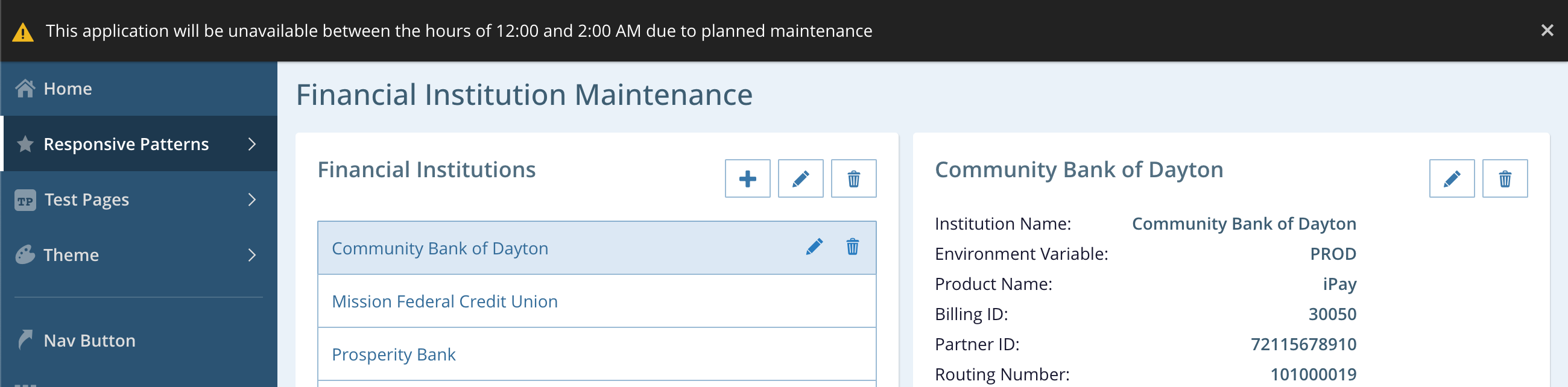 bannerText: 'This application will be unavailable between the hours of 12:00 and 2:00 AM due to planned maintenance'