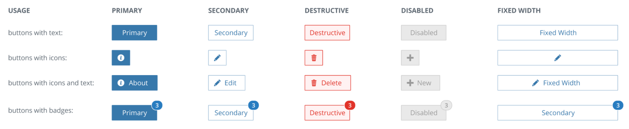 - Use a value of “destructive” if pressing the button triggers a significant, destructive action like deletion. This button style should be used sparingly.