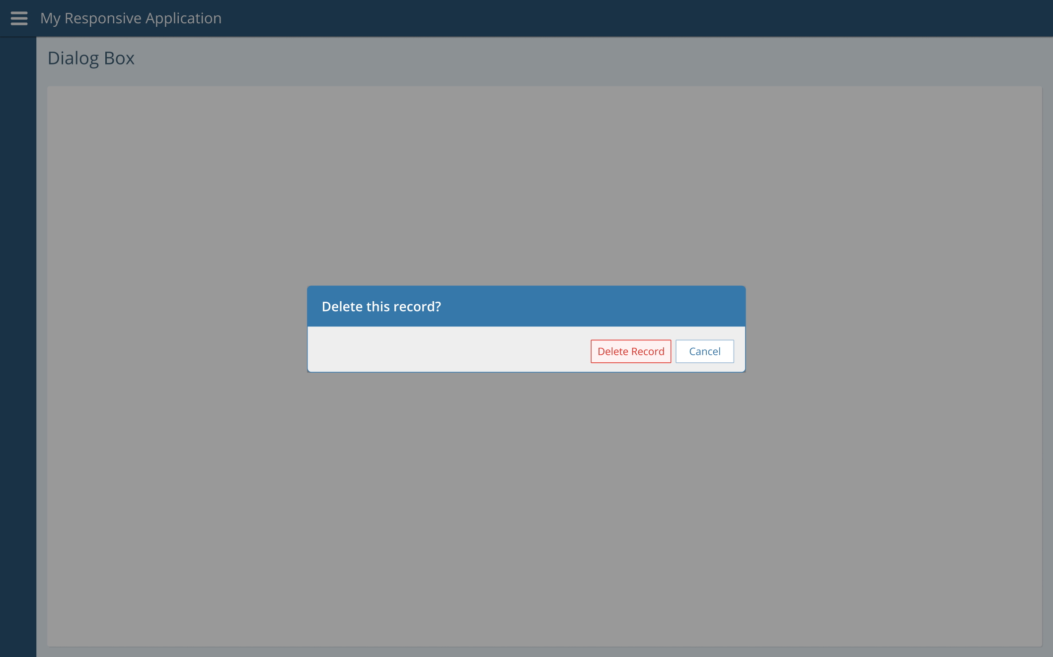 Here’s an example of a question showing a destructive button. We set jhaButtonStyle="destructive" on the “Delete Record” button since pressing that button results in a significant, destructive action.