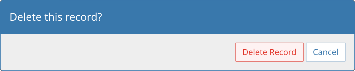 Here’s an example of a question showing a destructive button. We set buttonStyle="destructive" on the “Delete Record” button since pressing that button results in a significant, destructive action.