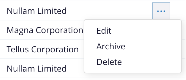 For grid “more” buttons, nest instances of rui-button-menu-option within a rui-grid-more-button in the cell. Set alignment to a value of 'right' if the button appears at the right side of the grid; this aligns the dropdown menu to the right edge of the button. (Leave this property at its default value of 'left' otherwise.) It can also be helpful to specify a tooltip for the button with the title property, since the button doesn’t display text.