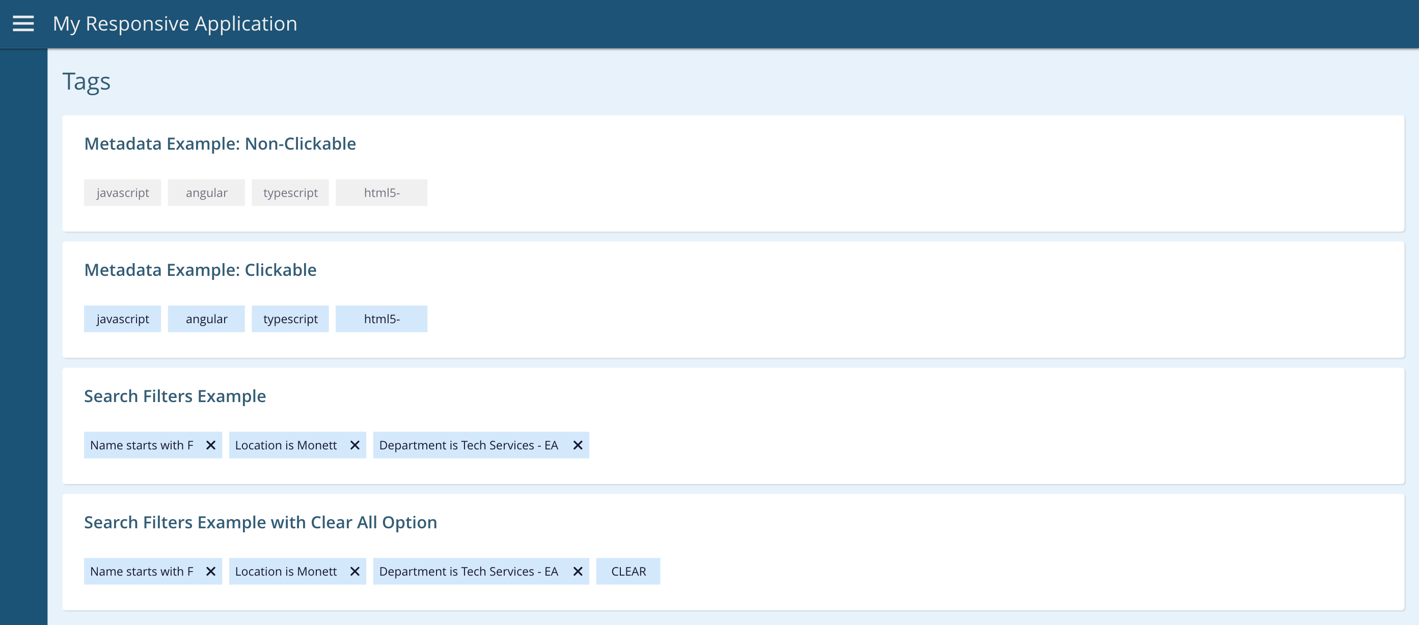 Responsive UI supports two use cases for tags: displaying metadata and displaying search filters.